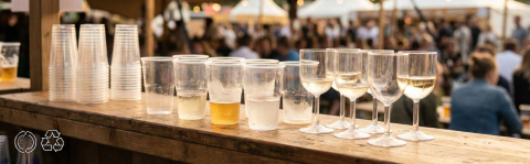 Duurzame drinkoplossingen voor festivals. Van plastic recyclebekers en wijnglazen tot herbruikbare bekers